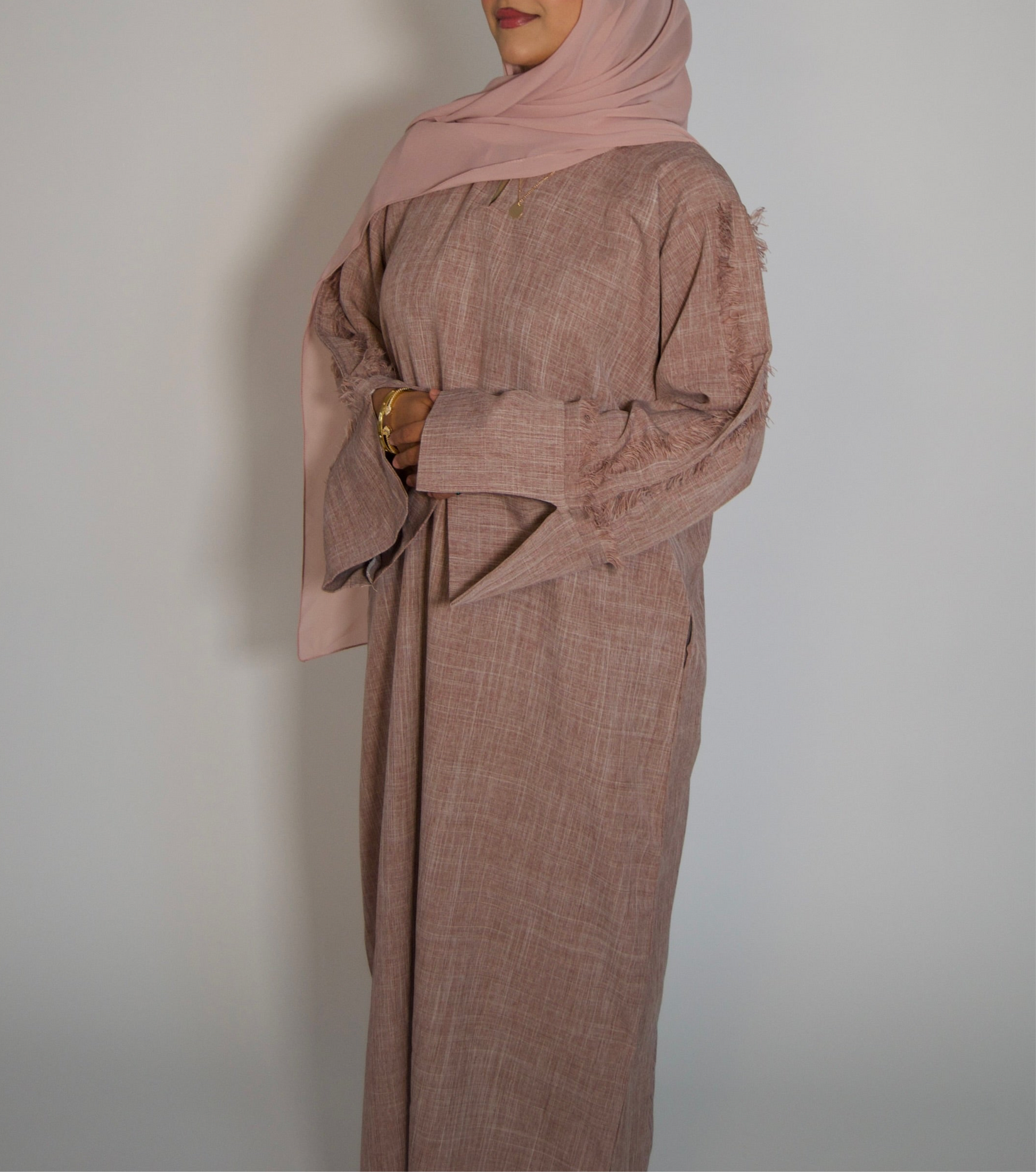 The Abāyah is elevated with a tasteful slit cut on the sleeves, adding a subtle yet chic detail, while the arms are adorned with a refined design that brings out its sophistication. A timeless piece that balances comfort, elegance, and functionality—ideal for everyday wear or special occasions during the cooler season.