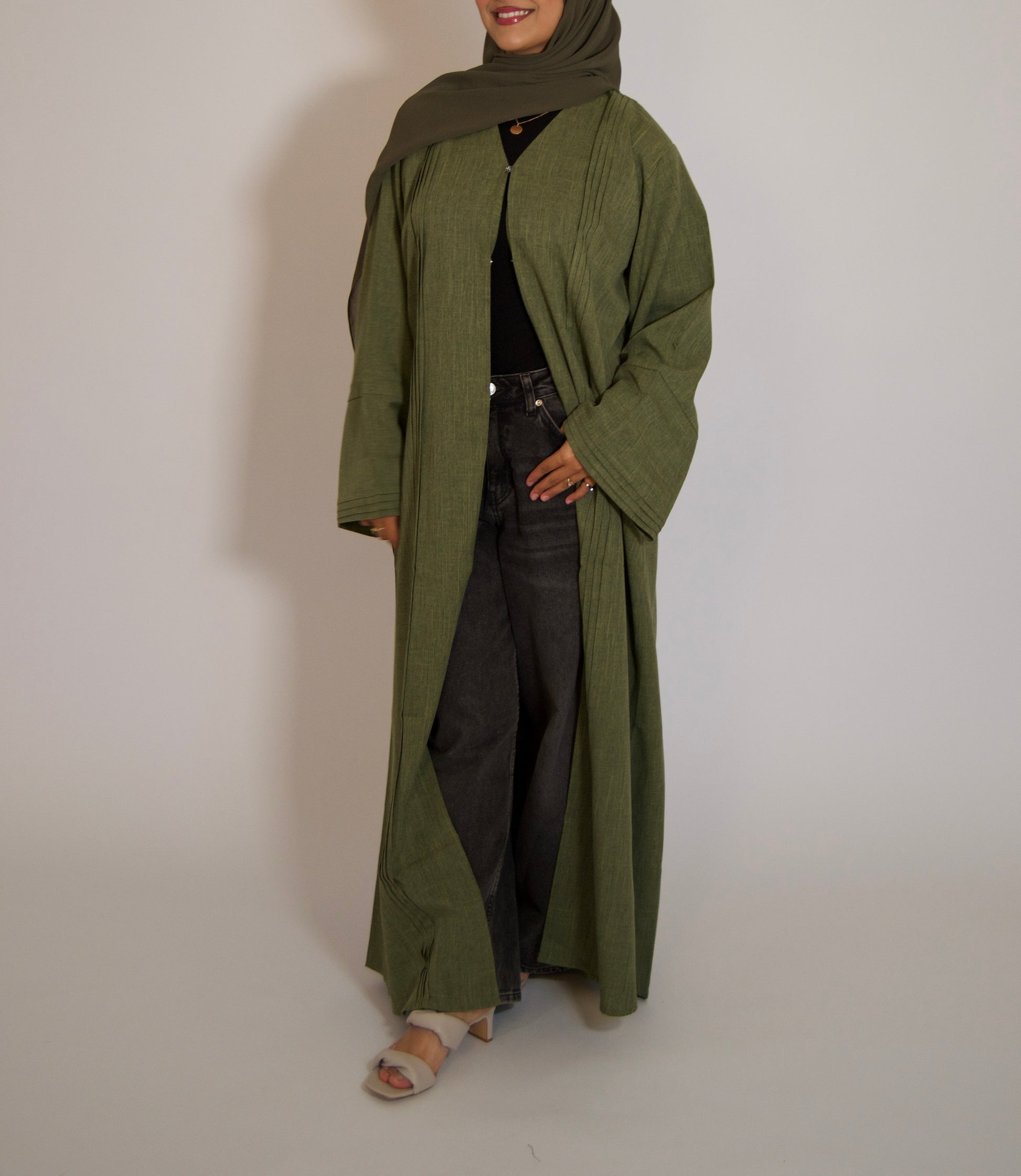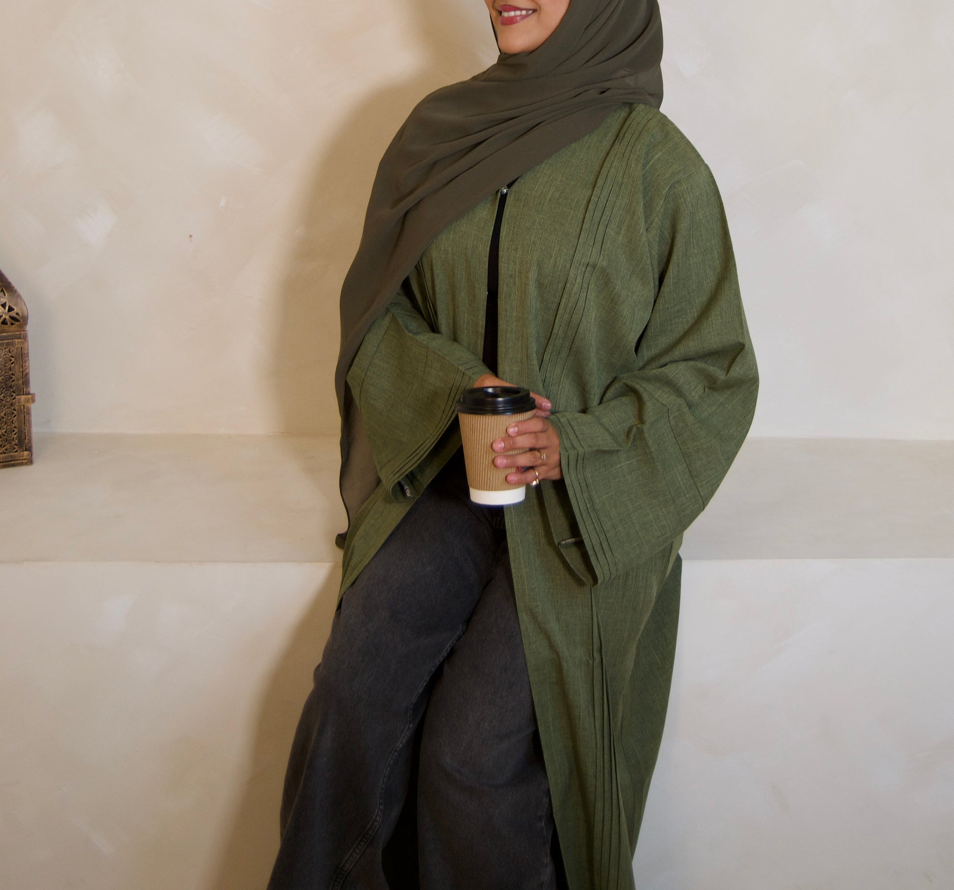 The Abāyah is complemented with a matching hijab, creating a coordinated and elegant ensemble that requires little effort to style. Its versatile design makes it suitable for both casual day wear and more formal occasions, allowing you to transition seamlessly throughout your day. The rich olive tone adds a touch of sophistication, making this Abāyah a must-have staple in any wardrobe.
